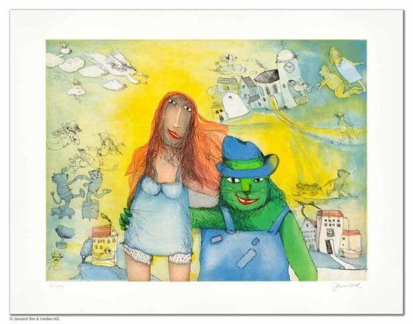 Zu seinem 85. Geburtstag ist diese größte von Janosch je geschaffene Farbradierung zusammen mit zwei weiteren Motiven erschienen.