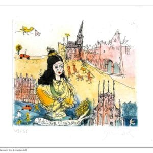 Diese Radierung wird vom Verlag aus mit einem Passepartout im Format 45 x 45 cm geliefert, welches bereits im Preis inbegriffen ist.