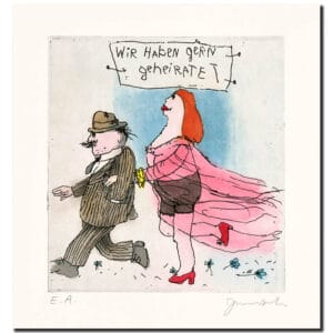 Diese Radierung wird vom Verlag aus mit einem Passepartout im Format 45 x 45 cm geliefert, welches bereits im Preis inbegriffen ist.