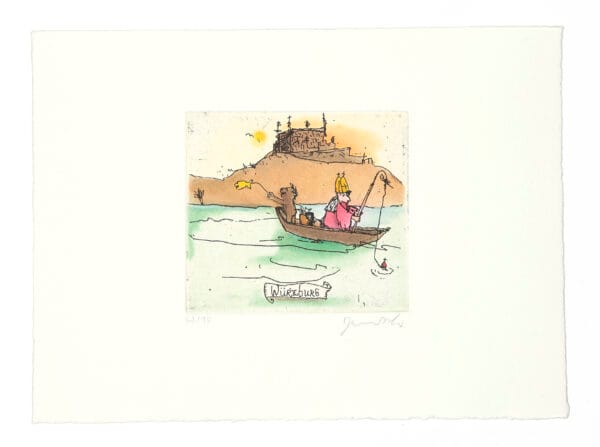 Diese Radierung wird vom Verlag aus mit einem Passepartout im Format 30 x 40 cm geliefert, das Passepartout ist bereits im Preis inbegriffen.