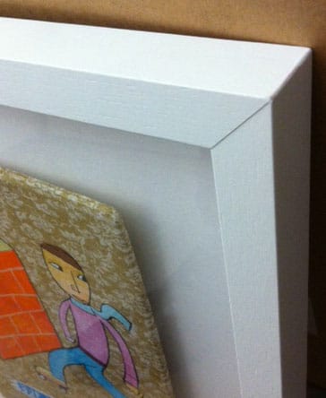 Papier auf Wellpappe kaschiert im Rahmen