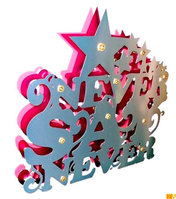 Aluminium // Plexiglass Dieses Kunstwerk kann in sämtlichen Farben geliefert werden – So auch z.B. mit einem Spiegel auf der Vorderseite. (Die Farben können auch kombiniert werden!) Auch in dem Format 45 x 45 x 15 cm erhältlich. NEVER SAY NEVER is attributed to the vice of starification and the media game, a sinister universe governed by the emptiness of appearances. It explores the hidden part of the artistic world, the star system ravaging the planet turning any unknown into a star for a night often to the detriment of true artists. With a harmonious and glamourous design, Joseph Belhassen denounces what is hidden behind the richness, fame, as well as the whole dream machine produced by the artistic industry therefore revealing the perverse behaviours that arrange themselves at the surface of fundamental creation.