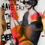 Mel Ramos‘ Mint Pattie aus dem Jahr 2017 zeigt einen Frauenakt, der auf einem überdimensionalen Minzplätzchen der Marke York kniet; die Hände gestützt auf den Oberschenkeln. Der Hintergrund ist in einem Farbverlauf von Braun nach Rosa gehalten.