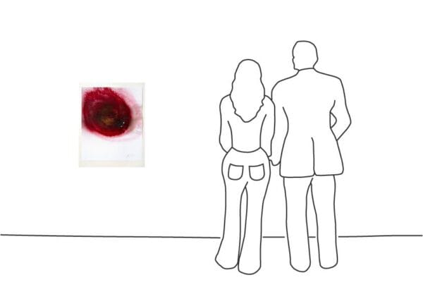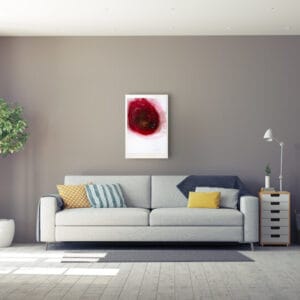 Siebdruck und Reliefdruck im weißen matten Holzrahmen.