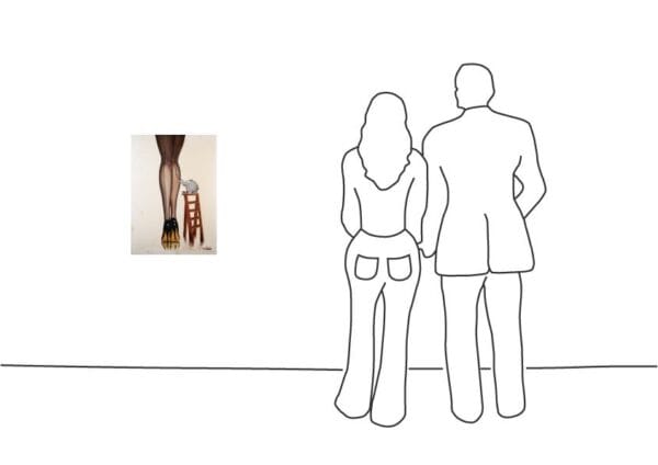 Wer Otto Waalkes und seine schier unendliche Kreativität kennt, den wird es kaum wundern, dass er sich – neben seinen Tätigkeiten als Komiker, Schauspieler und Synchronsprecher – auch auf dem Feld der Malerei und in seinen farbenfrohen und überaus ausdrucksstarken Bildern und Gemälden so richtig „autobt“. Und den wird es keineswegs erstaunen, dass auch hier der Ottifant – der von Otto selbst erschaffene Comic-Elefant (der natürlich nicht zufällig fast genauso heißt wie der Meister selbst)- zumeist seinen großen Auftritt hat. Einer der Ottifanten darf auf den Bildern selten fehlen, so dass gleich auf den ersten Blick zu erkennen ist, wer hier den Pinsel geschwungen hat. Und das gilt selbstverständlich auch für das Werk „Auf dem Strich“, das zwei attraktive, „bestrumpfte“ Damenbeine in (atemberaubend hohen) High-Heels und einen Ottifanten auf einer kleinen Leiter zeigt. Letzerer ist damit beschäftigt, eine exakte Naht – oder eben auch den namensgebenden „Strich“ – auf der Strumpfhose der Dame aufzumalen. Das Gemälde „Auf dem Strich“ – in sogenannter „Mischtechnik auf Leinwand“ angefertigt – ist also keineswegs so verrucht, wie man meinen könnte, aber genau so gewitzt und augenzwinkernd, wie man es von einem „echten Otto“ erwarten darf.