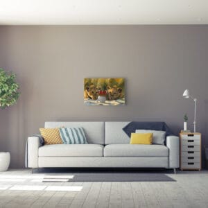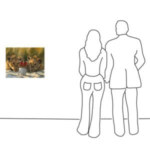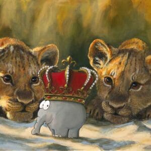 Welch majestetischer Anblick: Zwei neugierige Löwenbabys beäugen respektvoll einen kleinen Ottifanten, der stolz seine Krone trägt.