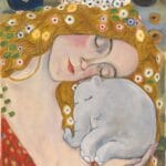 Auch die auf dem Kunstwerk abgebildete Dame und der kleine handschmeichelnde Ottifant scheinen ins Land der Träume gereist zu sein.