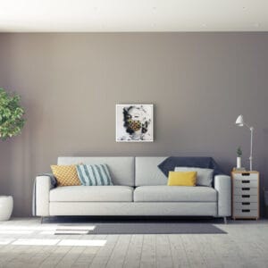Original Monotypie auf Acrylglas vor Leinwand montiert.