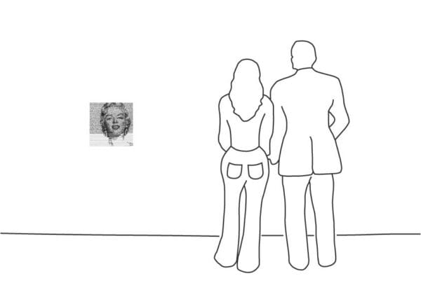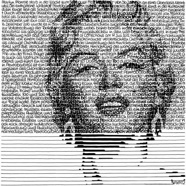 Nach Amy Winehouse ist Marilyn die zweite Arbeit, die im unteren Bereich des Bildes Linien statt Worte beinhaltet. Auch hier gibt es einen Übergang in Form eines EKG (Echokardiogramm) mit einer anschließenden dauerhaften (Null-)Linie. Bei Marilyn findet sich dies in der 36. Zeile, was symbolisch für ihre nur 36 Lebensjahre steht.