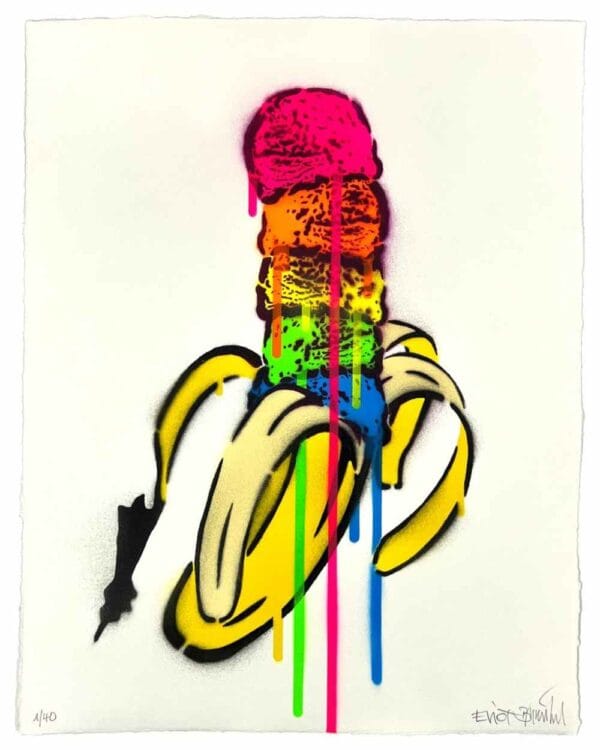 Die Handsignatur unterstreicht darüber hinaus die persönliche Verbindung zwischen Künstler und Werk und zeugt von der Sorgfalt und Hingabe, mit der Baumgärtel seine Kunst erschafft. Es ist diese Kombination aus künstlerischer Qualität, limitierter Verfügbarkeit und persönlicher Note, die die „Eisbanane“ so besonders macht.