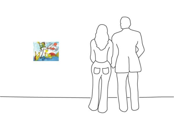 Lebensbejahende Gelassenheit und authentische Haltung: Beides charakterisiert nicht nur Udos Persönlichkeit und Rockmusik. Gleiches gilt für den 2018 entstandenen Siebdruck mit Handsignatur. Er basiert auf einer Malerei mit verdünnten Aquarellfarben. Seit einigen Jahren bevorzugt der Pop-Art-Künstler diese Technik. Zuvor überraschte er die Kunstszene mit seinen Likörellen, die er mit Spirituosen kolorierte. Kennzeichnend für sie war die dezente Tonart. Dementgegen verbreitet die limitierte Original-Grafik auf Papier mit Knallfarben und comicartigen Figuren gute Laune. Gleichzeitig regt das Motiv des Andrea Doria Bildes zum Nachdenken an.