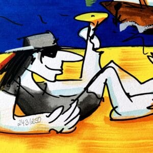 Diese Likörelle von Udo Lindenberg aus seiner 250. Auflage entstand 2019 und ist ist ein Kunstwerk für sich. Es beschreibt Ihn mit einem vollbusigen Mädchen am Strand von Sylt. Udo Lindenberg hatte schon immer eine gewisse Beziehung zu der Insel.