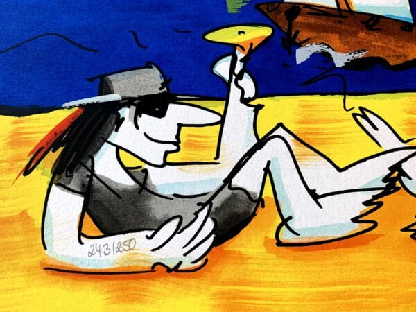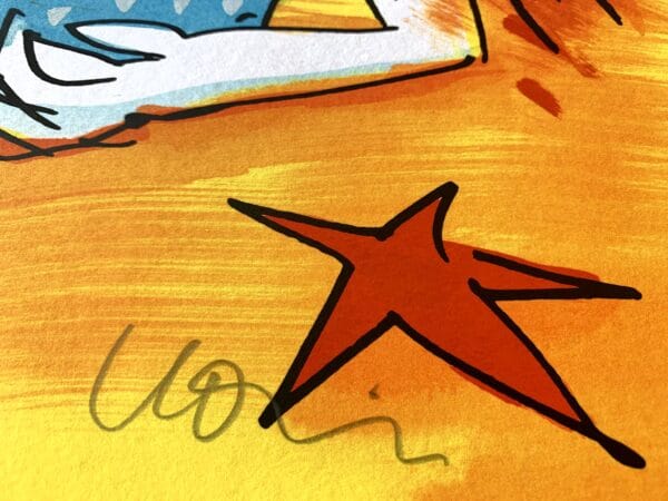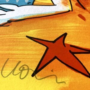 Am unteren Ende über dem Seestern rundet sich seine unverkennbare Signatur das Gemälde ab. Die Auflage von 250 Bildern wurde auf seiner Rechten Hand im Bild vermerkt und unterstreicht die Seltenheit dieser Anfertigung.