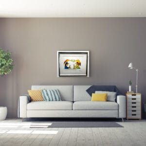 Es ist gerahmt mit Passepartout und Museumsglas.
