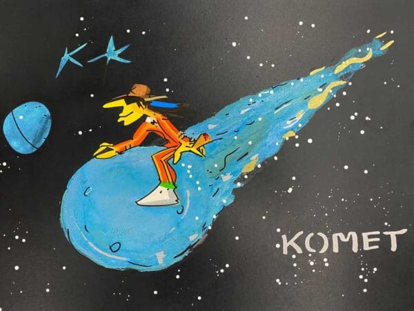 Udo Lindenberg ist bekannt für seine einzigartige Malerei und seinen unverwechselbaren Stil – und genau das spiegelt sich auch im beeindruckenden Werk „Komet“ wider. Die leuchtenden Farben und dynamischen Linien verleihen diesem Kunstwerk eine ganz besondere Ausstrahlung, sodass es garantiert zum Hingucker an deiner Wand wird.